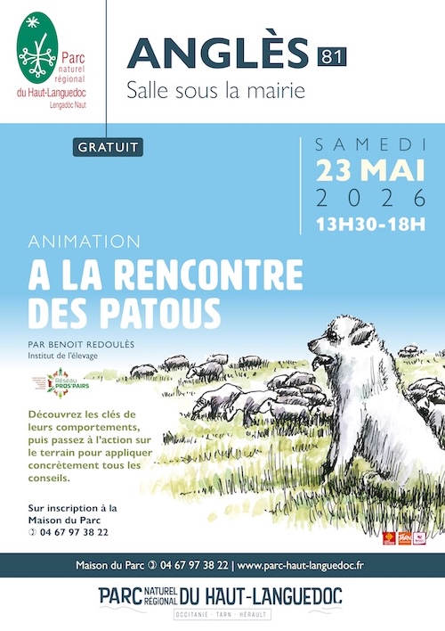 Le Parc naturel régional du Haut-Languedoc organise une sortie « A la rencontre des patous » le samedi 23 mai 2026 après midi sur la commune d’Anglès.